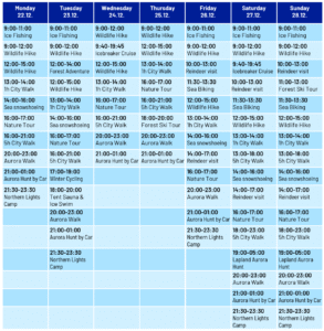 See the guided activities available on Christmas Week 22nd – 28th of December 2025 from the table below. Experience Oulu city, the snowy forests and frozen sea! Check the availability of the experiences from the active providers’ web pages.